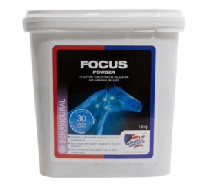 Focus Powder is a calming and concentration supplement for horses, designed to support relaxation, hormonal balance and consistent behaviour. With adaptogenic Ashwagandha, Chaste Tree Extract, Magnesium and B Vitamins, it promotes a calm yet attentive outlook without sedation. Botanical extracts and antioxidant support help manage stress in competition, travel and training environments. Suitable for mares, geldings and stallions requiring behavioural and focus support.